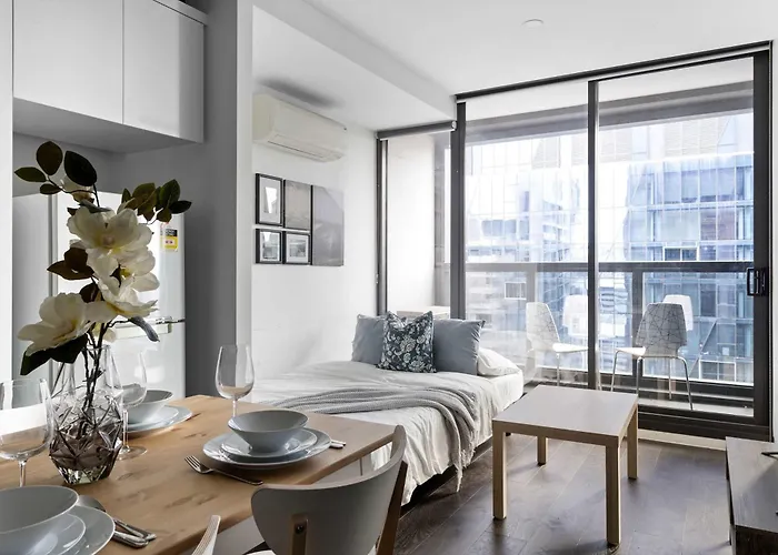 يقع مكان الإقامة على بعد نحو 10 دقيقة بالسيارة من ضريح ريميمبرانس وعلى بُعد 10 دقيقة سيرًا على الأقدام من محطة حافلات King St/Lonsdale St. سيجد الضيوف حدائق فلاجستاف ليس بعيدا عن الشقة. ستجد ملبورن ستار على بعد 1.9 كم عن هذه الشقة.